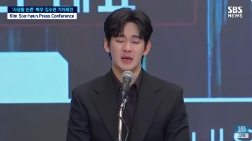 김수현은 기자회견 중 감정을 억누르지 못하고 눈물을 흘리며, 자신의 입장을 차분히 설명했습니다.